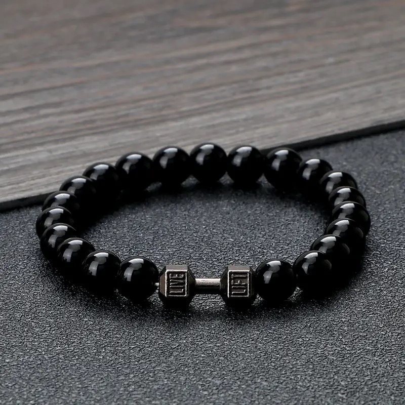 Experimenteaza armonia si forta cu bratara noastra unica, realizata din margele pretioase din piatra naturala si un pandantiv elegant in forma de gantera din otel inoxidabil. Fiecare margea este atent selectata pentru a transmite energie si echilibru, in timp ce pandantivul in forma de gantera simbolizeaza puterea si determinarea. Aceasta bratara nu doar completeaza orice tinuta, ci si aduce un sentiment de siguranta si implinire interioara. Alege sa porti aceasta bijuterie si fii pregatit sa iti imbunatatesti starea de spirit si sa iti exprimi personalitatea puternica si autentica