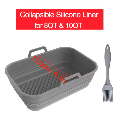 Set din Silicon pentru bucatarie cu 2 forme copt pliabile, 2 manusi si 2 ustensile. Gri