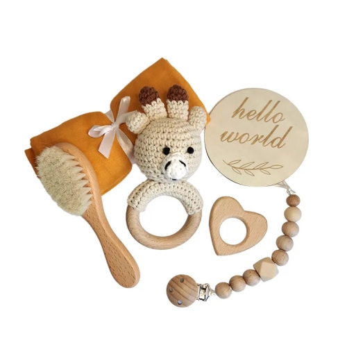 Set bebelusi, Nou Nscuti, Hello World , 6 piese, lantisor suzeta, jucarie interactiva, Oita crosetat