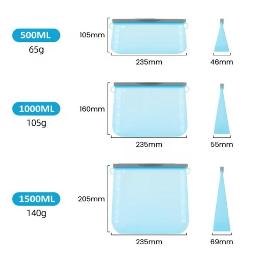 Punga reutilizabila, impermeabila, din silicon alimentar pentru conservarea si depozitarea alimentelor in frigider sau congelator, cu inchidere ermetica tip Ziploc, capacitate 1500 ml culoare Blue