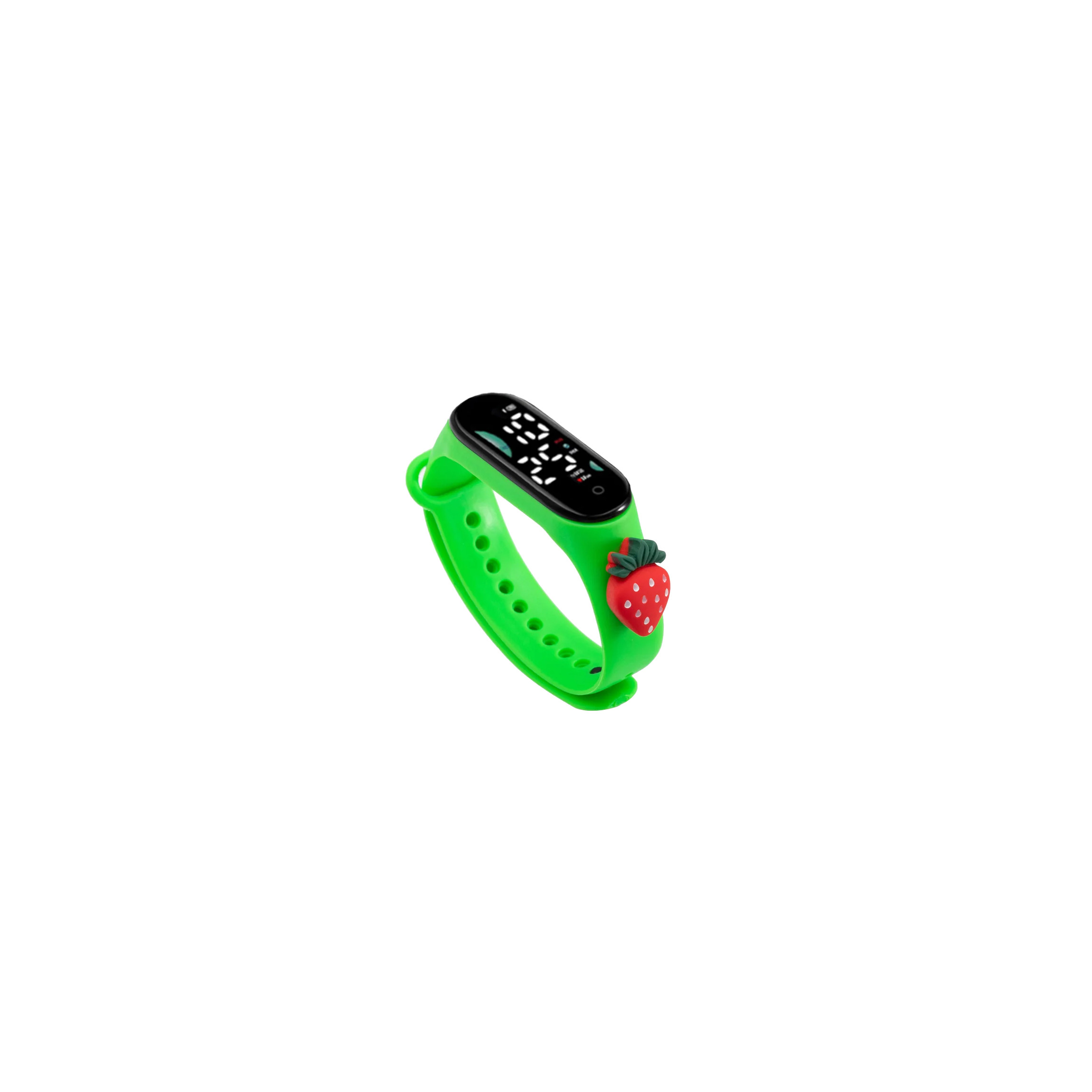 Ceas pentru copii cu bratara din silicon, nontoxic si sigur pentru pielea copiilor. Are baterie integrata iar afisajul digital poate fi cititi cu usurinta de copii si poate fi o modalitate distractiva si utila pentru gestionarea timpului.Curea confortabila si ajustabila asigura potrivirea perfecta pentru incheietura fiecarui copil Model capsuna Culoare Verde neon