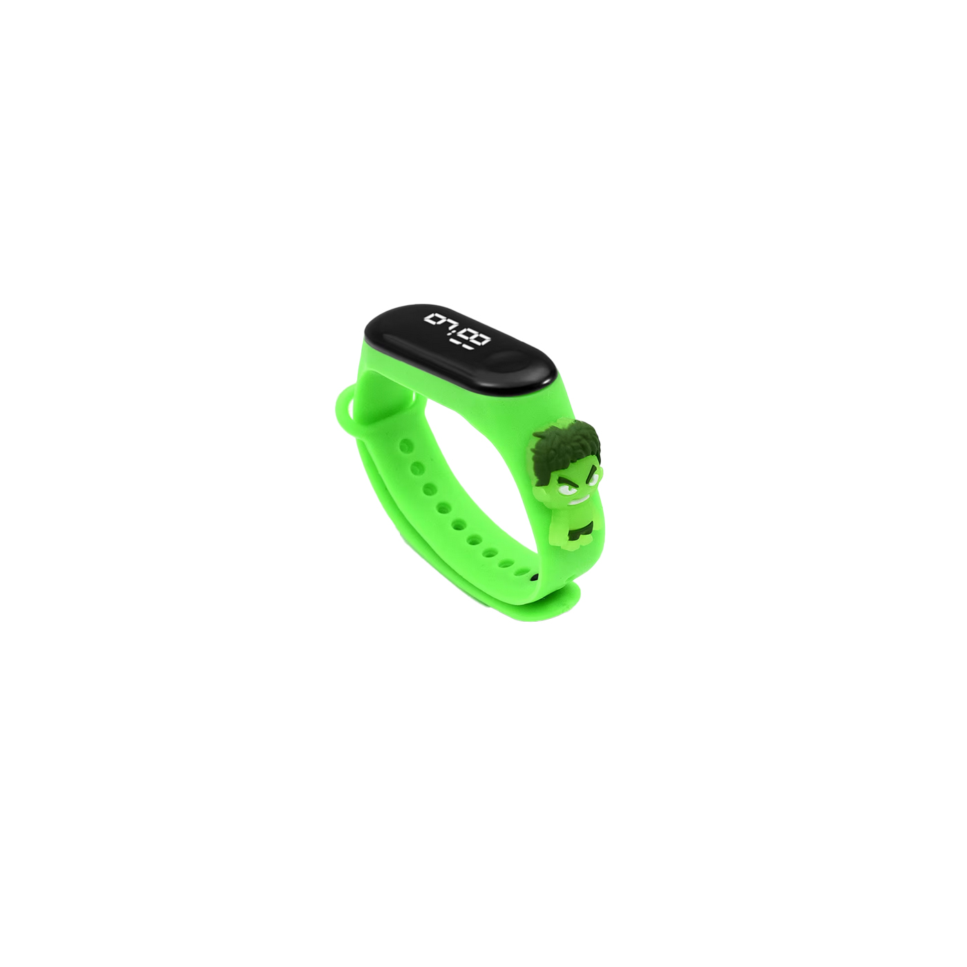 Ceas pentru copii cu bratara din silicon, nontoxic si sigur pentru pielea copiilor. Are baterie integrata iar afisajul digital poate fi cititi cu usurinta de copii si poate fi o modalitate distractiva si utila pentru gestionarea timpului.Curea confortabila si ajustabila asigura potrivirea perfecta pentru incheietura fiecarui copil Model Hulck Culoare verde neon