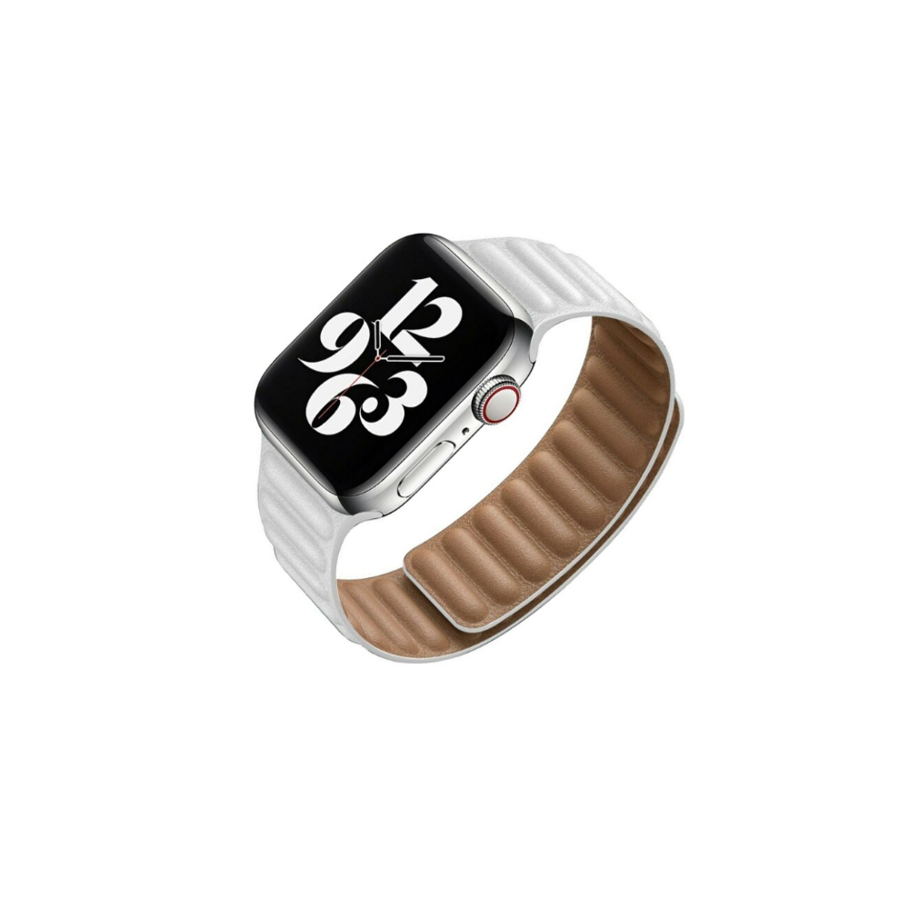 Curea Magnetica din Piele pentru Apple Watch 42/44/45/49mm, Alb