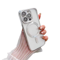Husa protectie telefon pentru Iphone 15 Pro Max de Sticla cu Incarcare MagSafe, Argintiu