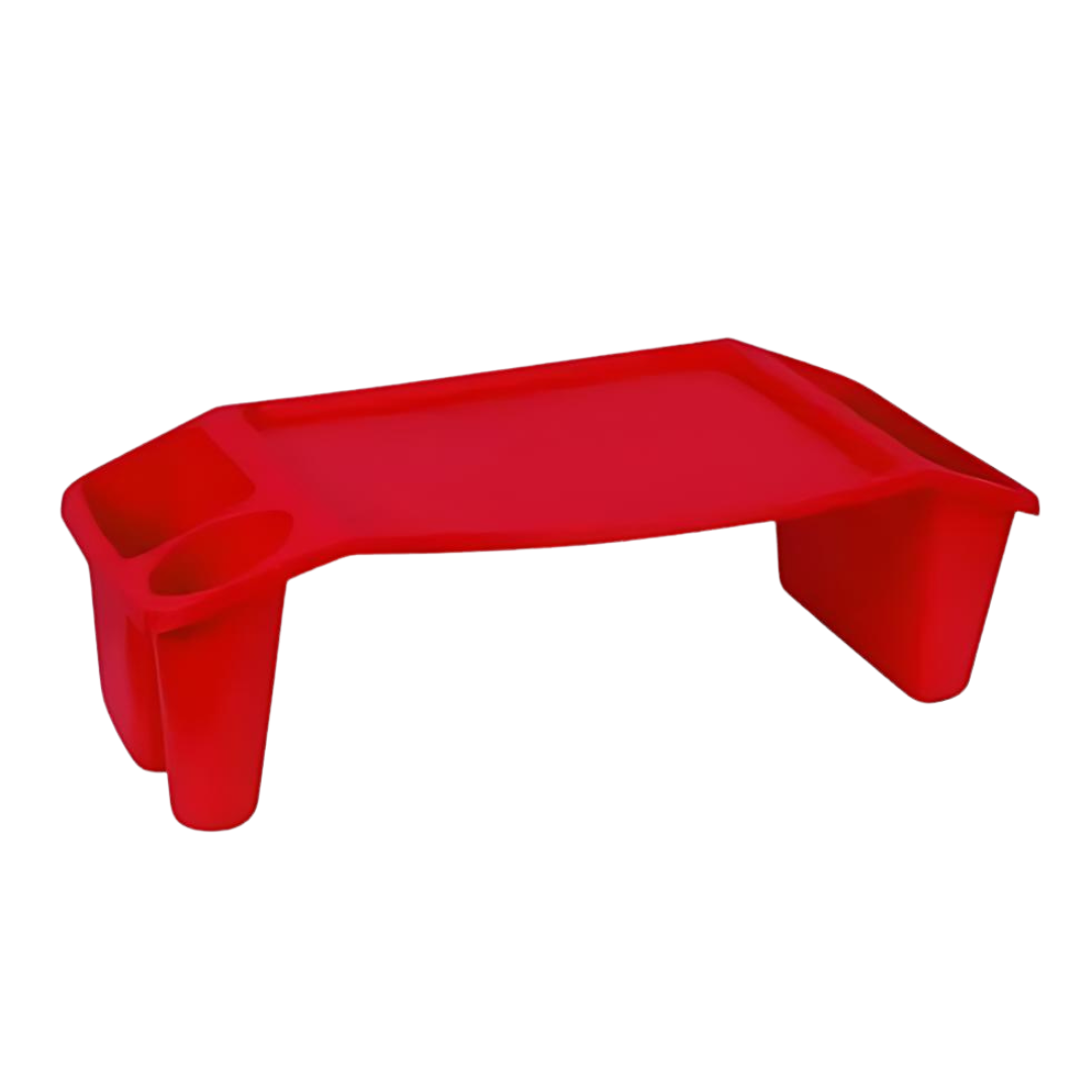 Transformati activitatile zilnice ale copilului dumneavoastra intr-o experienta comoda si placuta cu aceasta masuta din plastic de culoare albastru. Proiectata pentru a fi asezata deasupra picioarelor copilului atunci cand acesta sta, masuta ofera o suprafata generoasa de 35x27 cm, perfecta pentru scris, desenat, citit sau chiar pentru servirea mesei. Dotata cu laturi functionale, masuta dispune de cutii de depozitare de 24x9x17 cm si 15,5x9x27 cm, ideale pentru creioane, jucarii sau alte accesorii, precum si un suport circular cu diametrul de 8 cm pentru pahar sau sticla. Versatila si practica, masuta poate fi utilizata atat pe pat, pe canapea, cat si pe podea, adaptandu-se usor nevoilor copilului in diverse contexte. Cu dimensiuni totale de 59,5x30,3x21,1 cm, aceasta masuta multifunctionala este un accesoriu esential pentru orice copil activ si creativ.