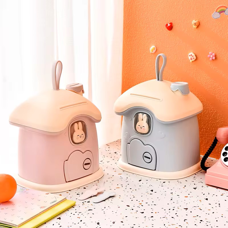 Descoperiti bucuria economisirii si invatati copiii despre gestionarea banilor cu aceasta pusculita adorabila in forma de casuta. Fabricata din plastic durabil si dotata cu o cheie, aceasta pusculita este perfecta pentru a incuraja obiceiuri financiare sanatoase de la o varsta frageda.Forma de casuta colorata si prietenoasa este ideala pentru copii, facand economisirea mai distractiva si mai atractiva.Fabricata din plastic rezistent, pusculita este conceputa sa reziste la utilizarea zilnica si sa protejeze economiile copilului dvs.Pusculita este echipata cu o cheie, oferind copiilor o experienta interactiva si sigura de economisire a banilor. Interiorul pusculitei ofera suficient spatiu pentru a depozita monede si bancnote, ajutand copiii sa isi gestioneze economiile eficient.