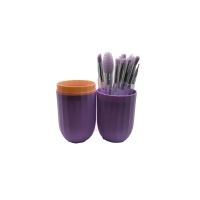 Set 10 pensule machiaj cu maner holografic si cu par sintetic moale, in suport cilindric din plastic Mov