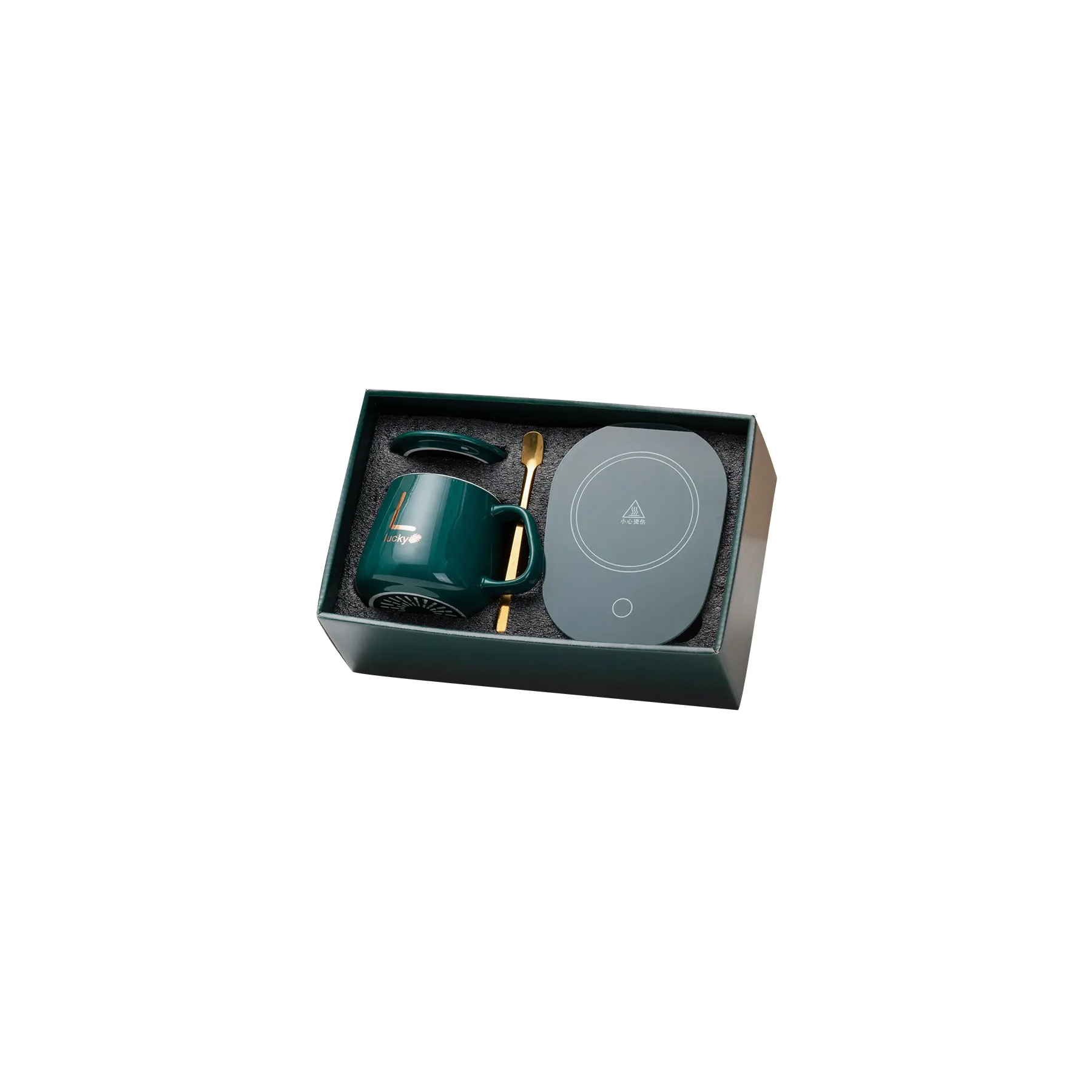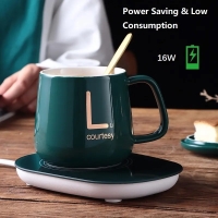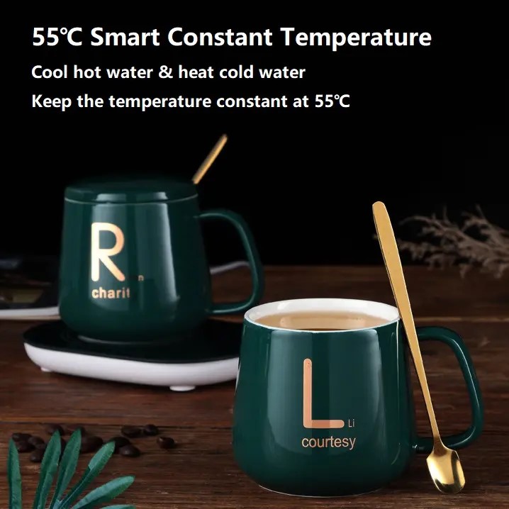 Set cadou cana ceramica cu baza incalzitor cu inductie,suport cu incalzire smart, buton touch, functie auto-oprire, capacitate 400 ml, Verde