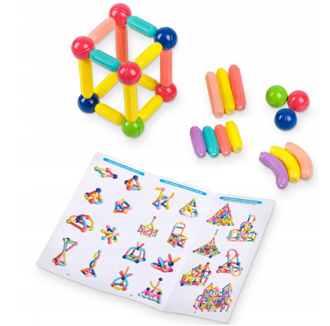 Cutie de depozitare cu 84 piese dotate cu magneti puternici , care permit copiilor sa le conecteze usor si sa le transforme intr-o multitudine de forme si obiecte. De la cladiri si masini pana la animale si foprme abstracte, posibilitatea de constructie sunt nelimitate.Acest set nu numai ca stimuleaza creativitatea si gandirea logica a copiilor dar ii si ajuta sa-si dezvolte abilitatile motorii fine si coordonarea ochi mana intr-un mod distractiv si captivant.Fiecare piesa este sigura si durabila, fabricata din materiale de inalta calitate, iar magnetii sunt bine fixati pentru a asigura siguranta si durabilitatea jucariei.